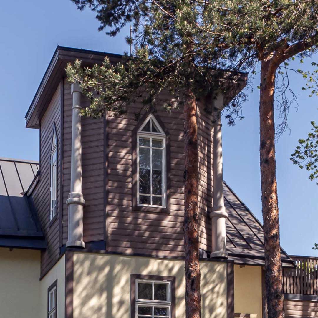 Pea 100 aasta vanuse eramaja projekti alusel ehitatud puitfassaadiga kortermaja Nõmmel. 7 korteriga väikemahuline eramu tüüpi kortermaja.